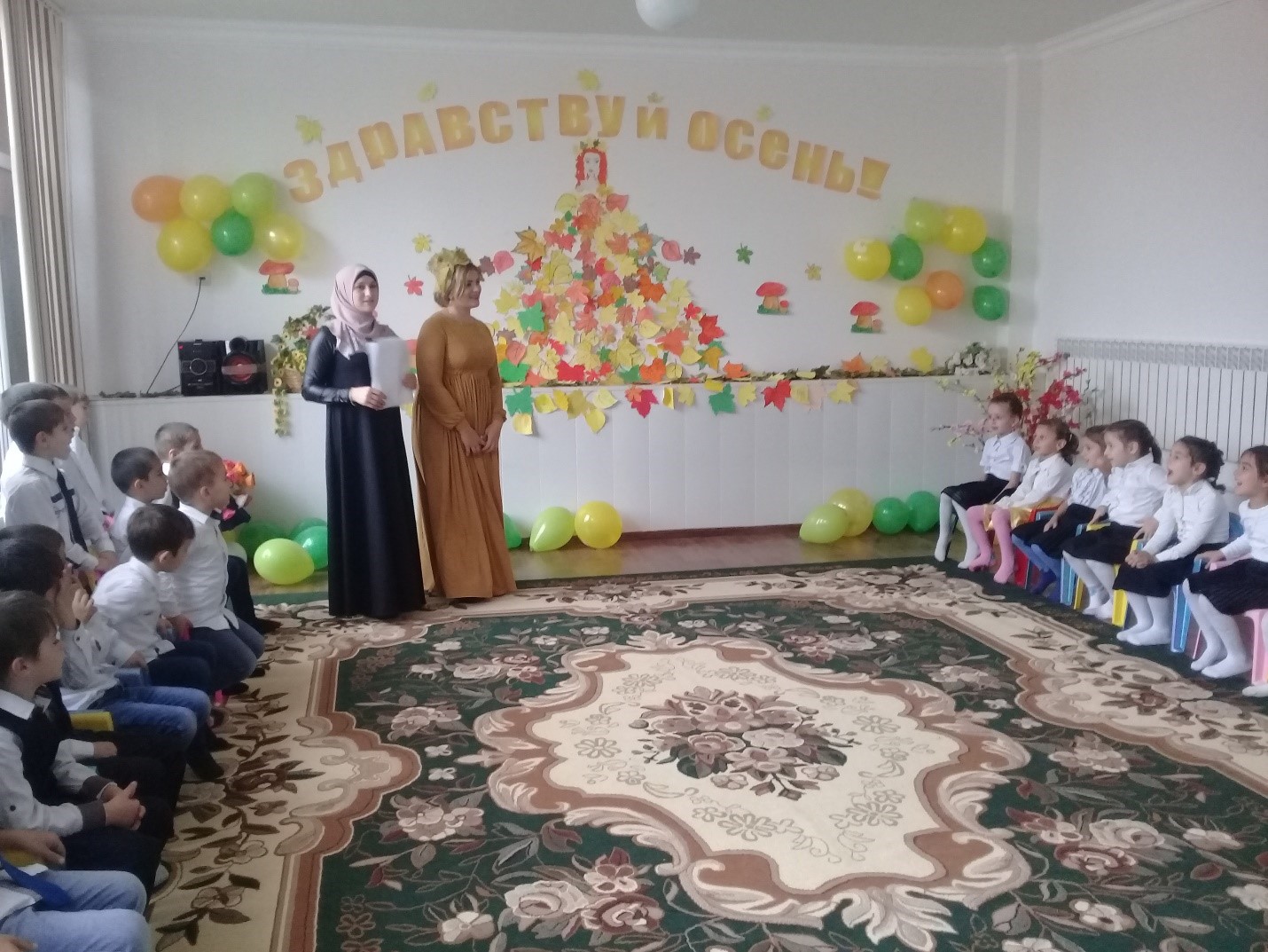 27.10.17 г. в ГБДОУ Детский сад № 2 «Дахар» прошел праздник «Здравствуй, гостья – Осень!». Зал был празднично украшен: листьями, шарами, осенними цветами. Развлечения были организованы и проведены в старшей группе детского сада. В подготовке праздника приняли участие воспитатели и родители воспитанников.
